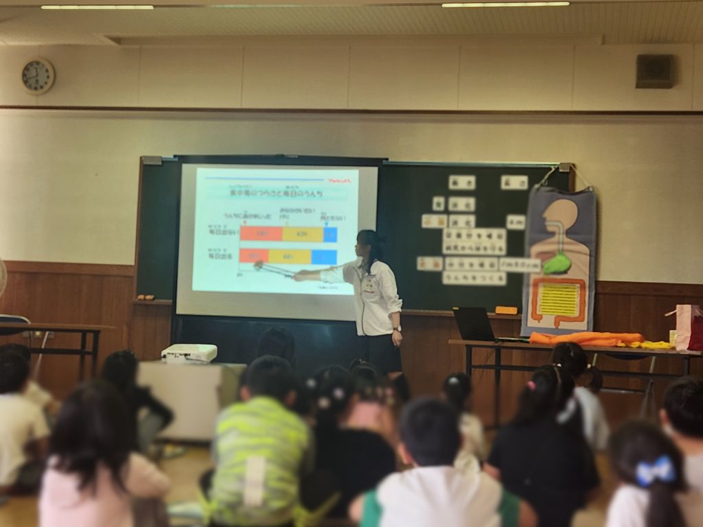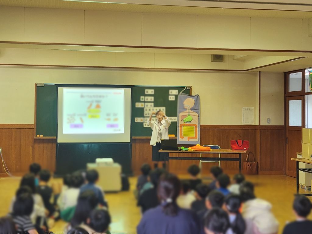 授業では、「おなかのはたらき」や「うんちの大切さ」「毎日元気に過ごすためにできること」などを、クイズやお話を交えながら楽しく学ぶひとときとなりました。