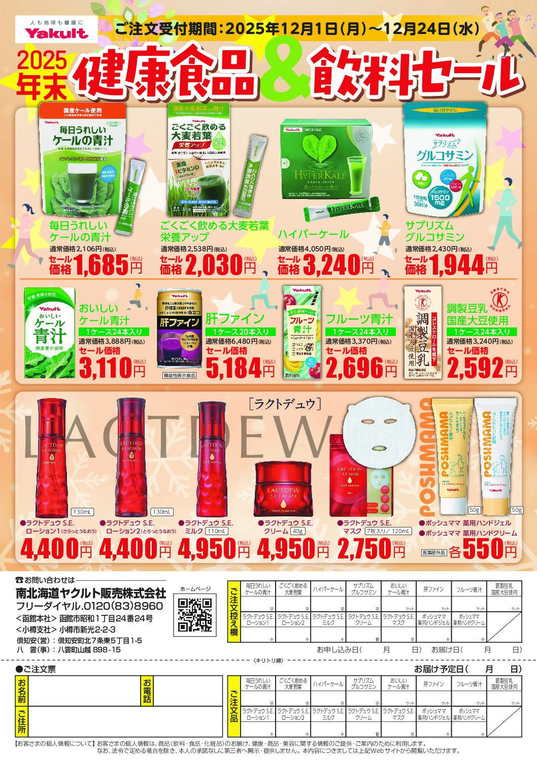 ヤクルト製品をご愛顧いただいている皆様に日頃の感謝を込めて、 2025年末 健康食品&飲料を特別価格でお届けいたします。