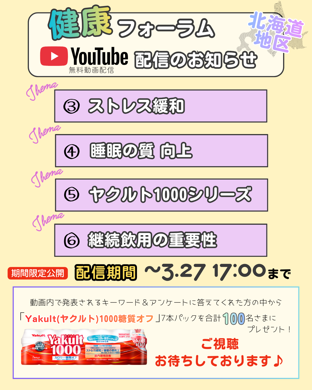 北海道地区 「ヤクルト健康フォーラム オンライン」をYouTubeにて無料でご覧いただけます。